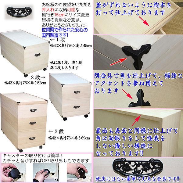雛人形 五月人形 桐収納ケース 押入 収納可能 奥行76cm 深型2段 ひな人形 総桐衣装ケース桐箱 キャスター 桐たんす 桐箪笥 桐タンス 関東〜九州送料無料 国産 保管庫 コンパクト収納庫