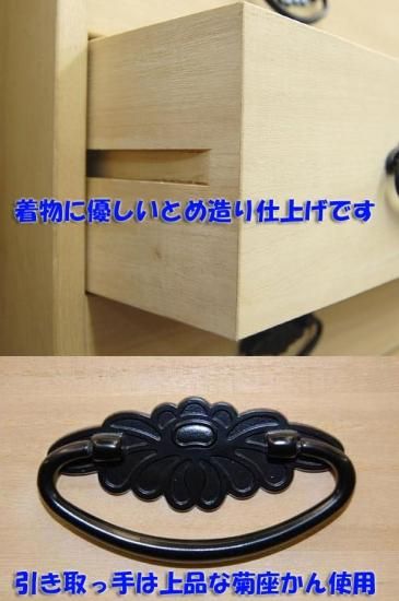 | 特徴 | 総桐タンス3段観音扉付着物用肥前桐民芸国産品!!たとう紙OK!! 桐材に厳しい社内基準を満たした良質で本物の桐を使用しておりますので、 きれいな節のない木目と色も安定しております。 天板・側板の厚みも15mmを使用しておりますので、 強度が違います!! 3段引出し・各1段ごとにタトウ紙を折らずに約2〜3枚収納できます。 (生地の厚みにより違いがあります。) たとう紙も折らずに収納できるワイドサイズで、 上置きや、クローゼット収納としても利用できます。 |