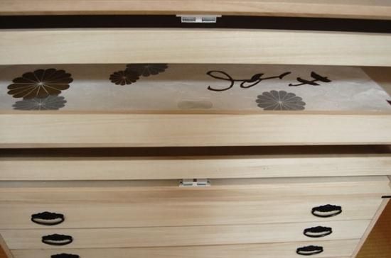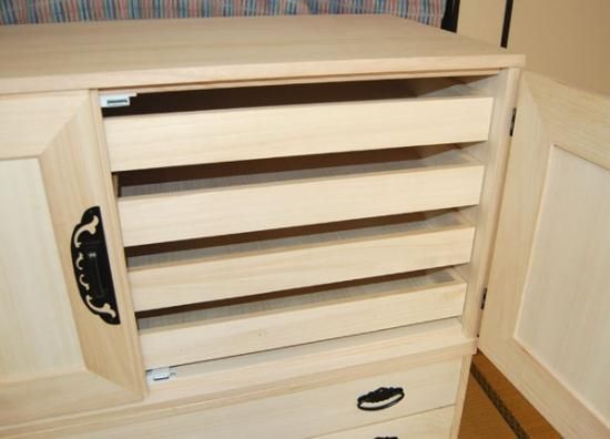 | 材質 | 本体・・・・・ 桐天然木無垢板15mm 引出し・・・ 桐天然木無垢板13mm 背板底板・・・4mm桐合板 |