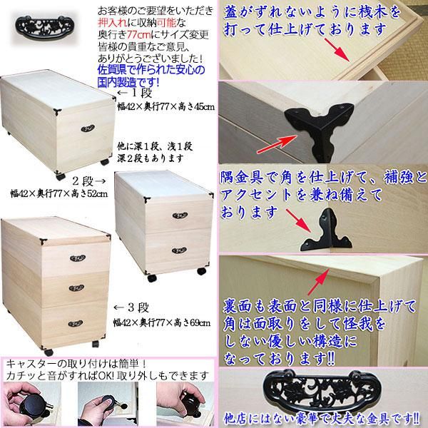 雛人形 五月人形 桐 収納ケース 押入 収納可能 奥行76cm3段2個 ひな人形 総桐衣装ケース桐箱 キャスター 桐たんす 桐箪笥 桐タンス 関東〜九州送料無料 国産 保管庫 コンパクト 収納庫
