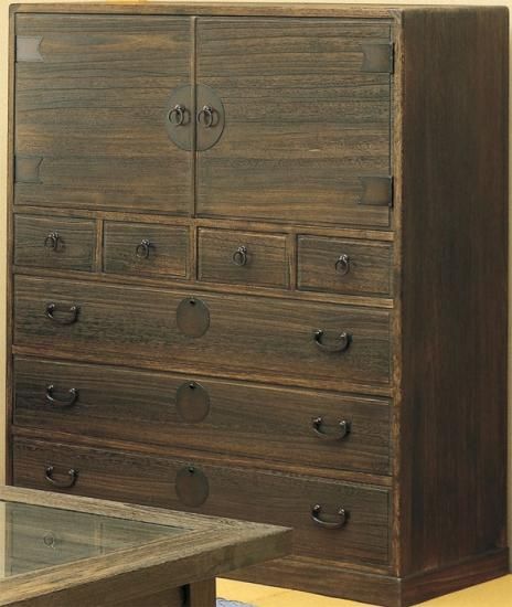 静岡県産焼桐仕上げ総桐箪笥深引き時代仕上げ5段8杯引国産品106cm幅和ダンス盆4杯古代1号FK-661【桐タンス/桐たんす】 【京都−市やま家具】 桐ダンス