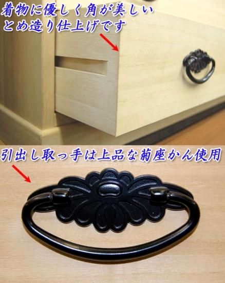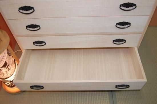 | 材質 | 本体・・・・・ 桐天然木無垢板15mm 引出し・・・ 桐天然木無垢板13mm 背板底板・・・4mm桐化粧合板 |