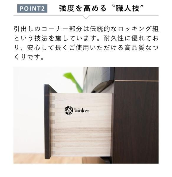 | 引き出し内寸 | 上段3杯W110.6×D36.7×H7.7cm 中段左右W52.6×D36.7×H12.3cm 中段大引2杯W110.6×D36.7×H14.3cm 下段W108×D36.7×H21cm |