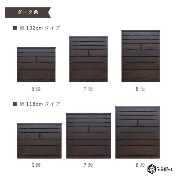 ダーク色 大川産桐たんす 118cm幅8段 8段桐無垢 ナチュラル ダークの2色対応 着物収納 桐箪笥 桐タンス118cm幅8段 【桐蔵】【関東〜九州設置送料無料】 【代引不可】