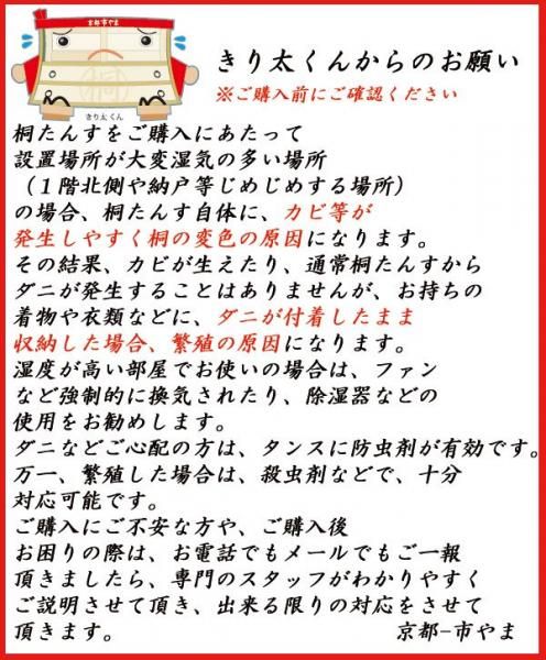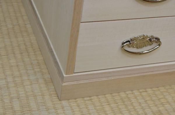 | 材質 | 本体・・・・・ 桐天然木無垢板15mm 引出し・・・ 桐天然木無垢板13mm 背板底板・・・4mm桐化粧合板 |