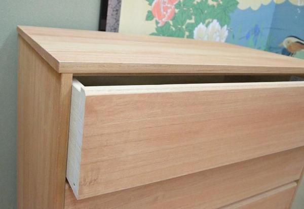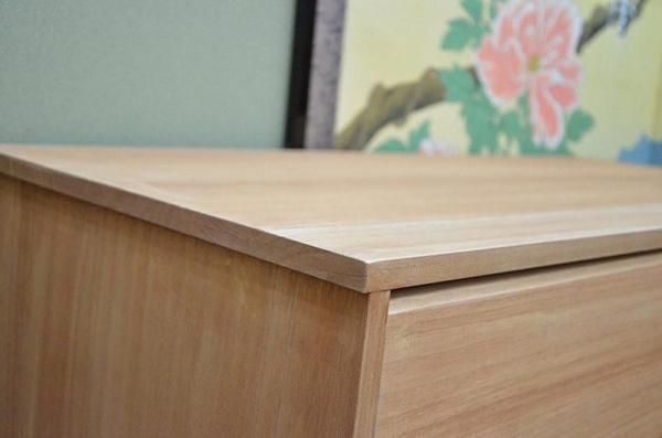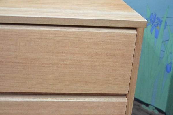 | 材質 | 本体・・・・・ 天板桐天然木無垢板天板15mm、側板15mm 引出し・・・ 前板桐天然木無垢板18mm |
