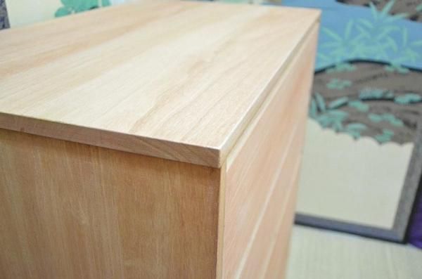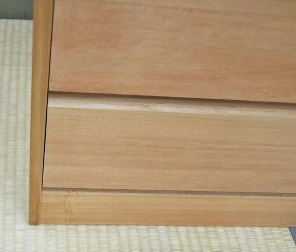 | 材質 | 本体・・・・・ 天板桐天然木無垢板天板15mm、側板15mm 引出し・・・ 前板桐天然木無垢板18mm |